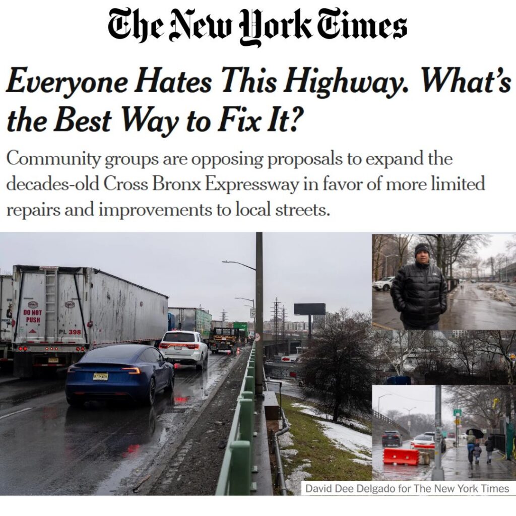 - As covered in amNY, Bronx residents, riders, and local groups are pushing for Governor Hochul to repair the Cross Bronx “within its original footprint” and further urging Mayor Mamdani to fast-track the Tremont Avenue busway “before state construction locks in a future that once again leaves the Bronx behind.”