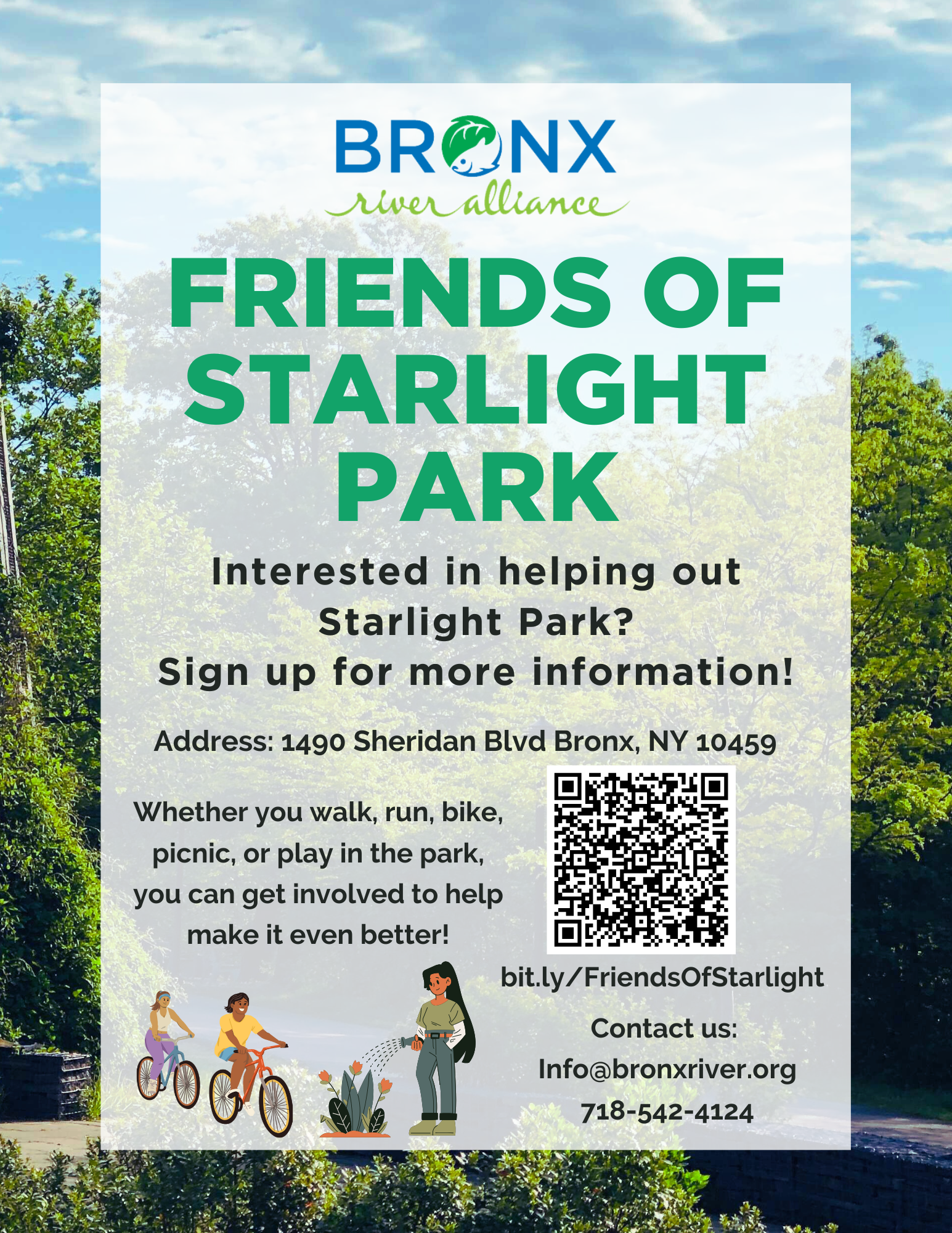 Volunteer with us Monday April 13th from 10am-12:30pm at Starlight Park, Bronx River House (1490 Sheridan Blvd, Bronx, NY 10459)! We will be cleaning ...