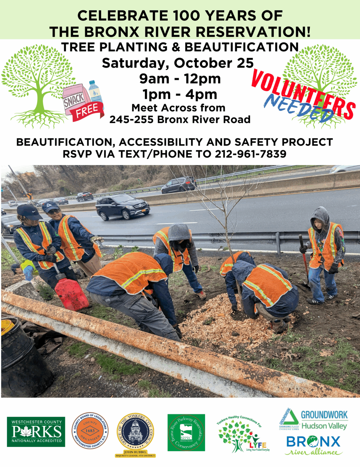 Celebrate 100 years of the Bronx River Reservation! Join a community effort to plant trees and beautify greenspace along the Bronx River in Yonkers. Date: